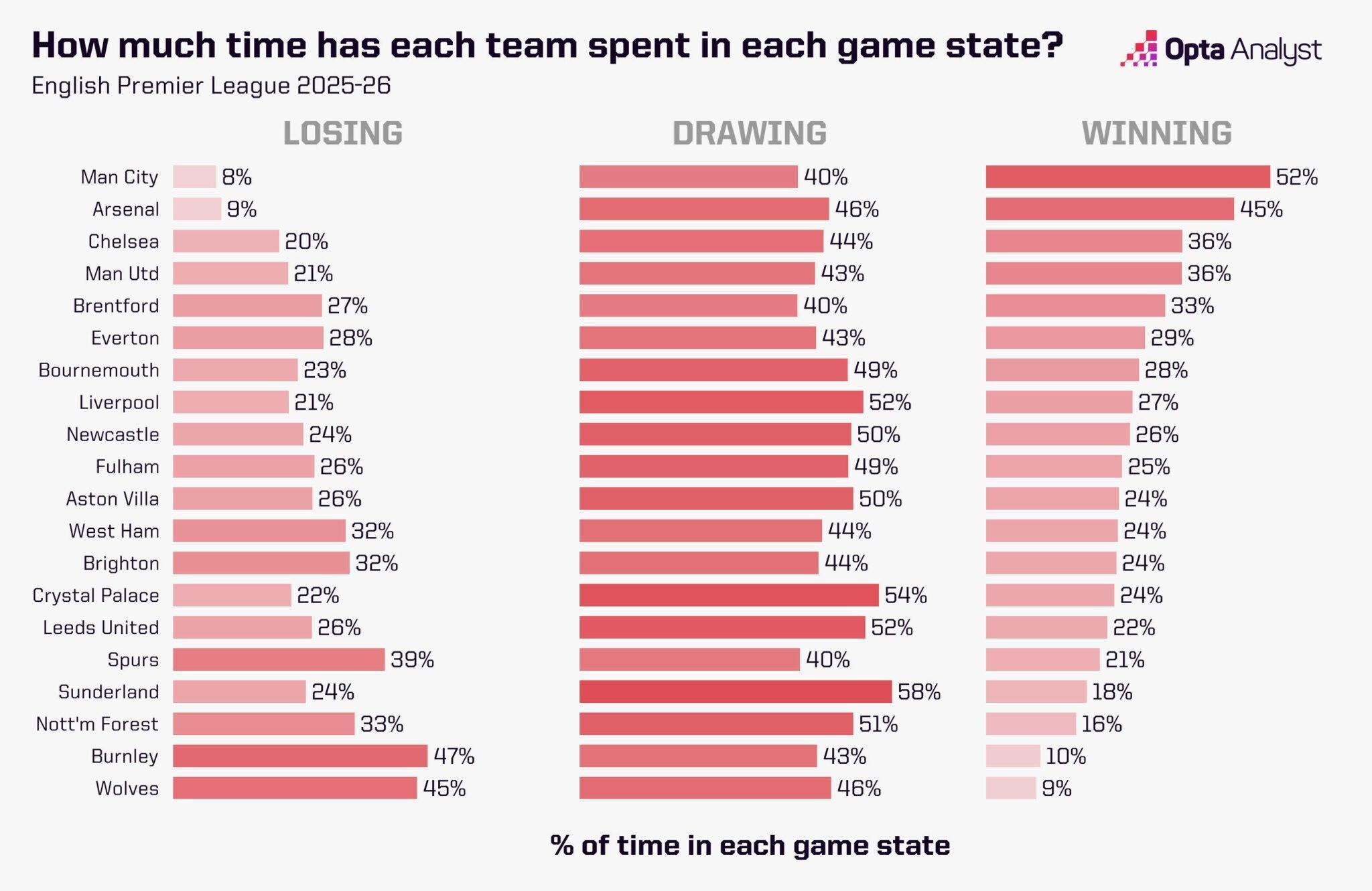 我们也必须记住,作为联赛领头羊,阿森纳在比赛中大部分时间都处于领先。作为一支志在夺冠的球队,他们完全有理由通过合理控制节奏来保住胜果,如果有45%的比赛时间都处于领先,又何必急于快速开球呢?